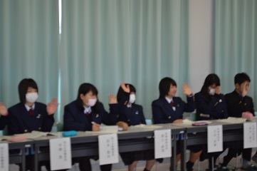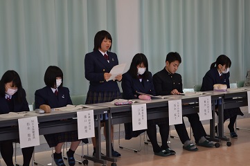 校長先生から「健康や望ましい生活習慣は、若い人にとって大事なものである」という主旨の御挨拶をいただきました。その後、本校生徒の体力の現状や健康状況について保健主事、養護教諭からの報告がありました。続いて、生徒保健委員長が本年度の保健委員会活動について発表しました。