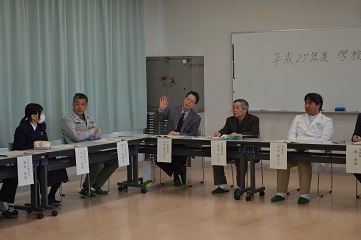 | 2月19日(金)10時から12時まで、本校会議室において、第2回学校評議員会、第2回学校関係者評価員会が行われました。 学校評議員および学校関係者評価委員の皆様方、御忙しいところお越しいただき、本校のために貴重なご意見やアドバイスなど、本当にありがとうございました。 |