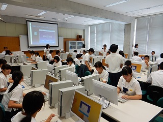多くの中学生に参加していただき、体験入学を開催することができました。天気も良く、非常に暑い中での実施となりました。まずは部活動見学をしていただきました。普段は学校外で部活動を行っている部も、本日だけは学校で部活動を行い、練習の様子を見ていただきました。本校には多くの部活動があり、それぞれが一生懸命に取り組んでいます。そういった姿も少しは見ていただけたのではないかと思います。