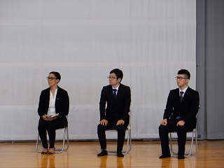 読み聞かせ終了後、副寮長の須﨑君が「私達は、何回も生きるのでなく明後日から始まる就職試験に向け、1度きりのチャンスだと思い、全力で向かっていきます」とお礼の言葉を述べました。