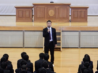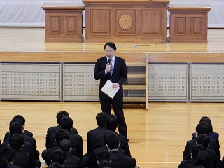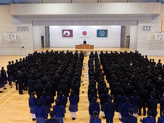 本日は、合格者説明会が行われました。教務部、事務部、生徒指導部、保健体育部から入学に当たっての事前指導、その後、天草警察署からスマートホンのトラブル回避のためのお話をしていただきました。午後からは会場を移して入寮説明会が行われます。入学式まであと2週間、高校生になるという気持ちをしっかり高めておいてください!