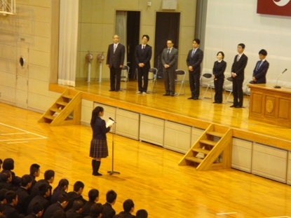 新しく来られた先生方を代表して、校長の江藤先生から挨拶をいただきました。生徒会長の坂本さんは歓迎の言葉を述べてくれました。