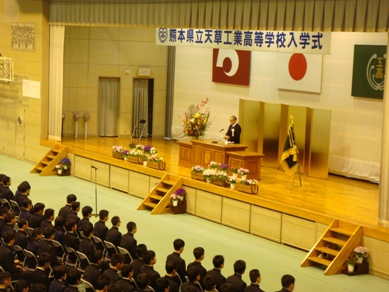 校長式辞では、新入生に期待することなどが述べられ、新入生たちも天草工業高校の生徒になるという自覚を強く持てたのではないかと思います。新入生代表、機械科の加世田君も力強く宣誓をしてくれました。