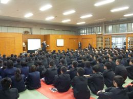 | 本日1限から3限の時間帯で新入生オリエンテーションが行われました。 江藤校長先生の講話では、今年度の目標である『果敢な挑戦』、『5S(整理・整頓・清掃・清潔・躾)活動の推進』、『2A(当たり前のことを当たり前に)運動』について話がありました。 その後は、教務主任、図書情報部長、進路指導部長、保健体育部、人権教育、生徒指導部長の講話を聞きました。 残りは、頭髪服装検査、部活動紹介、1学年部の先生からの自己紹介と続き、最後に校歌を練習して終了しました。 3時間に、ぎゅっと詰め込まれた内容でしたが、新入生も真剣に各先生方の話を聞いていました。 今回の講話を忘れずに、早く天草工業での生活に慣れて、楽しく充実した高校生活を送ることを期待しています(*^_^*) |