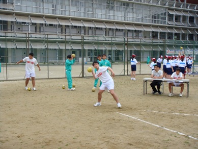 上体起こし ハンドボール投げ