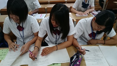 牛深高校にて、天草地区の高校の生徒会が集まる生徒会リーダー研修会に本校生徒会の情報技術科二年の池田楓さん、田口星羅さん、吉田萌也さんの3名で参加してきました。目的は、他校生徒会執行部との親睦を深め、活動状況等の情報交換を通して、各校の生徒会活動の改善に資することです。
