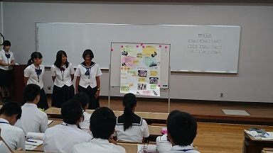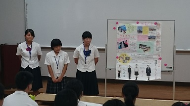 研修内容は、「天草地区の中学生を地元に残すために、自分たちで考えた架空の高校を作り、その学校のPR新聞を制作する」です。異なる高校の生徒が三人一班編成で取り組みました。各学校それぞれの良い所を自分たちで考えた架空の高校に取り入れ、高校生らしい素晴らしいPR新聞ができました。皆で考えた高校が存在したら、天草地区の中学生は必ず入学したいと思います(^-^)本校もPR新聞で制作された学校に一歩でも近づけるように、生徒会が中心となって頑張っていきます!!!
