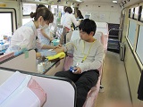 10月26日の献血セミナー後、3年生に献血の希望調査を行ったところ、たくさんの生徒から希望がありました。ただ、残念ながら、体重や年齢制限、風邪が流行し始めた時期だったので内服の関係、貧血など体調の問題などで、献血をしたかったけれどできなかったという生徒もいました。朝から夕方まで実施される中で、生徒・職員を合わせて88人が献血に協力しました。