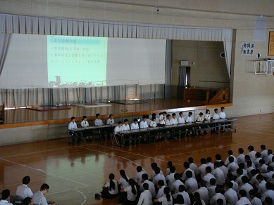 6月11日(月)に生徒総会を行いました。生徒会執行部と各委員長が今年度の活動内容について発表しました。これから天工生全員でより良い学校作りに励んでいきたいと思います。