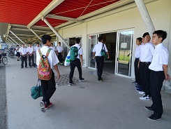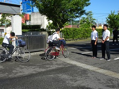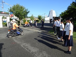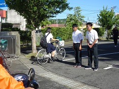 7時50分~8時15分までの朝の登校時間に合わせて、生徒昇降口、正門、裏門の3カ所で実施しました。
