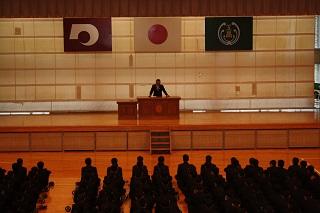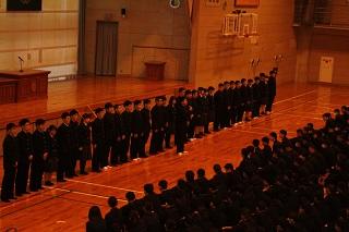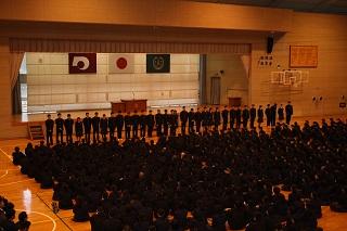 始業式の後、生徒会役員の退任式および認証式が行われました。