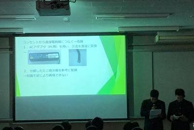 1月20日(月)の3、4時間目に電気科3年生による課題研究発表会を行いました。