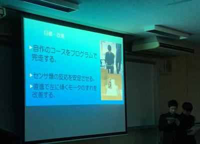 本年度は7班に分かれ、1年間研究をしてきた成果を電気科2年生及び先生方の前で発表をしました。