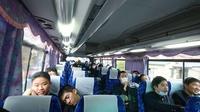 上里SAで休憩をとりました。バスの中ではカラオケなどをして、各クラス盛り上がっているようです。