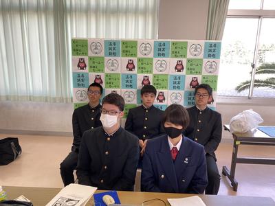 今年度は、zoomを利用したリモートでの発表となり、オンラインで出場校上位8校が参加し、大会当日の流れや注意事項を確認しました。初めて出場校同士が顔を合わせ、大会への意気込みを伝え合いました。緊張感とともに大会に向けての気持ちを高めることができました。