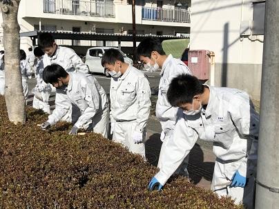 12月17日(木)に地域清掃ボランティアを全校生徒で実施しました。学校内だけでなく、学校周辺の道路や公園のゴミ拾いや除草作業を行いました。黙々と頑張り、清掃場所が目に見えてキレイになっていくことで身も心も清々しくなりました。また、作業中には地域の方々から感謝の言葉を頂き、達成感を得ることができました。今後も天草地域のために「私たちができること」を考え、実施していきたいと思います。