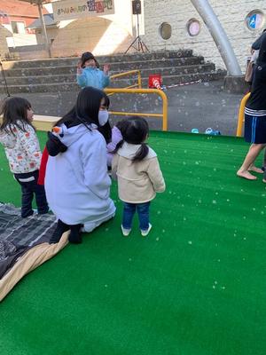 コロナ禍で多くのイベント等が中止されている中で、感染予防対策を徹底して行われた今回のイベントには、たくさんの方々が訪れてくださいました。子供たちの笑顔がたくさん見れ、多くの方々が銀天街で楽しい時間を過ごせたイベントとなりました。ボランティアスタッフとして着ぐるみを着て、受付や案内を行ったり、子供たちと一緒に遊ばせて頂きました。