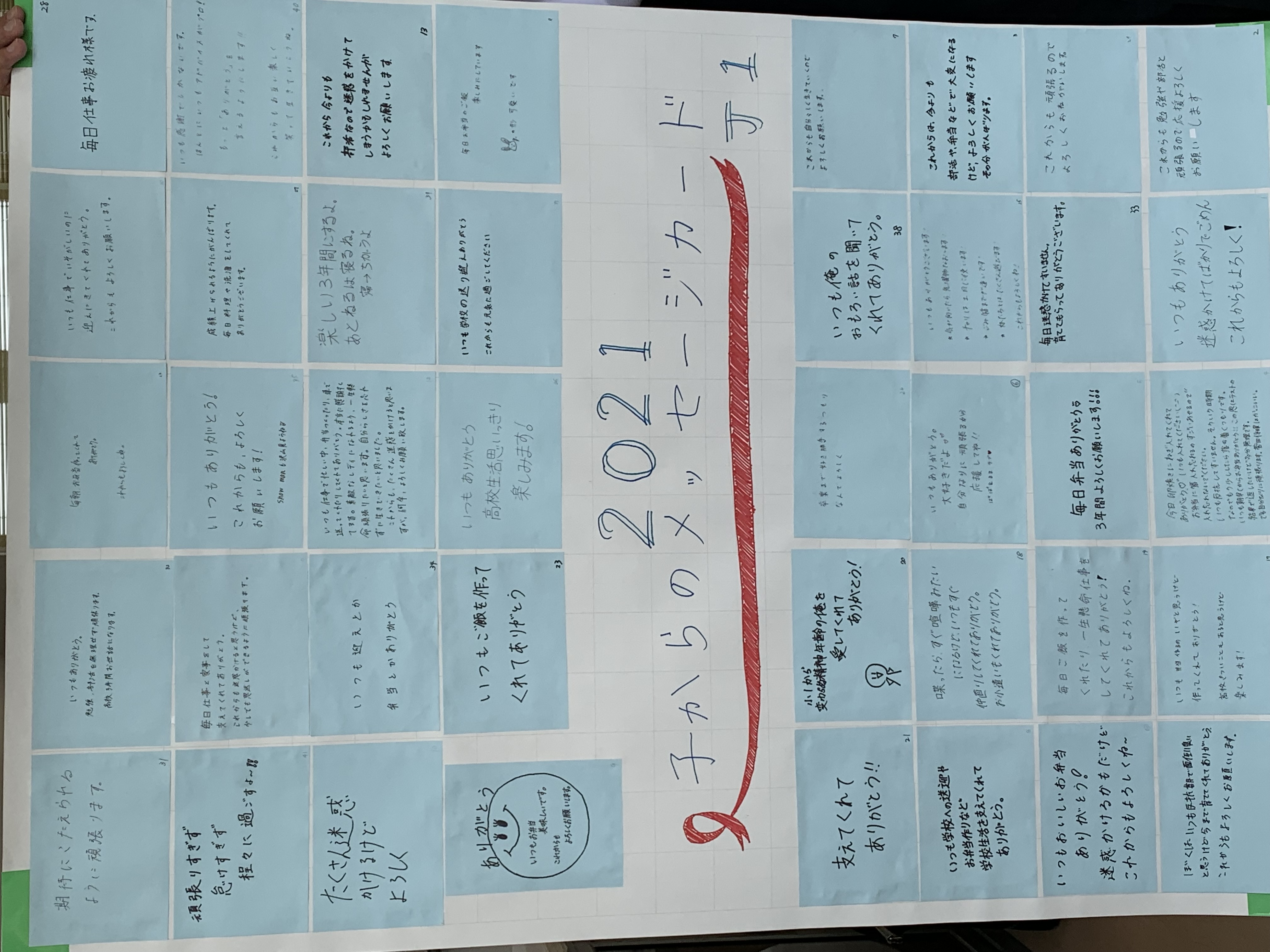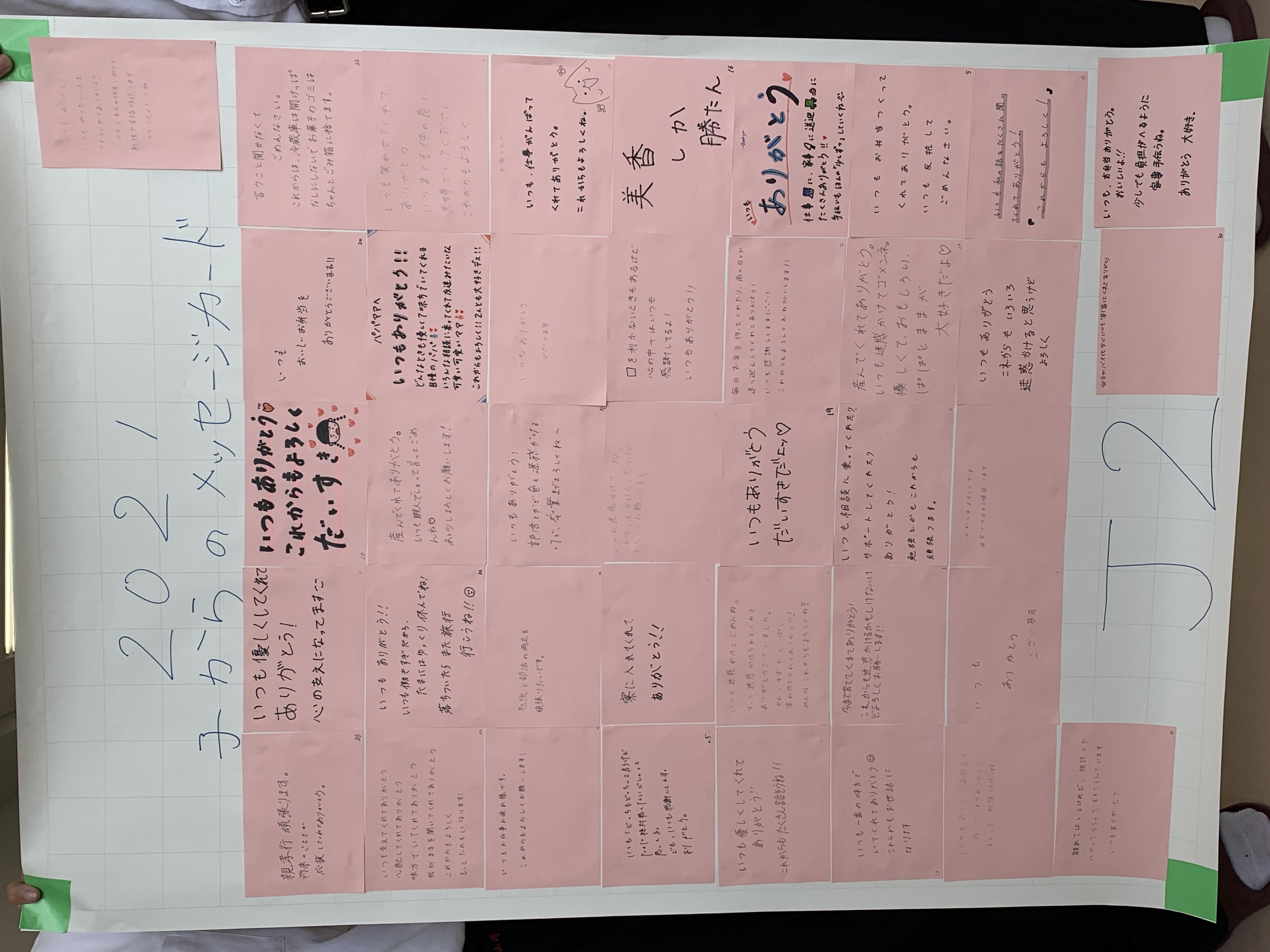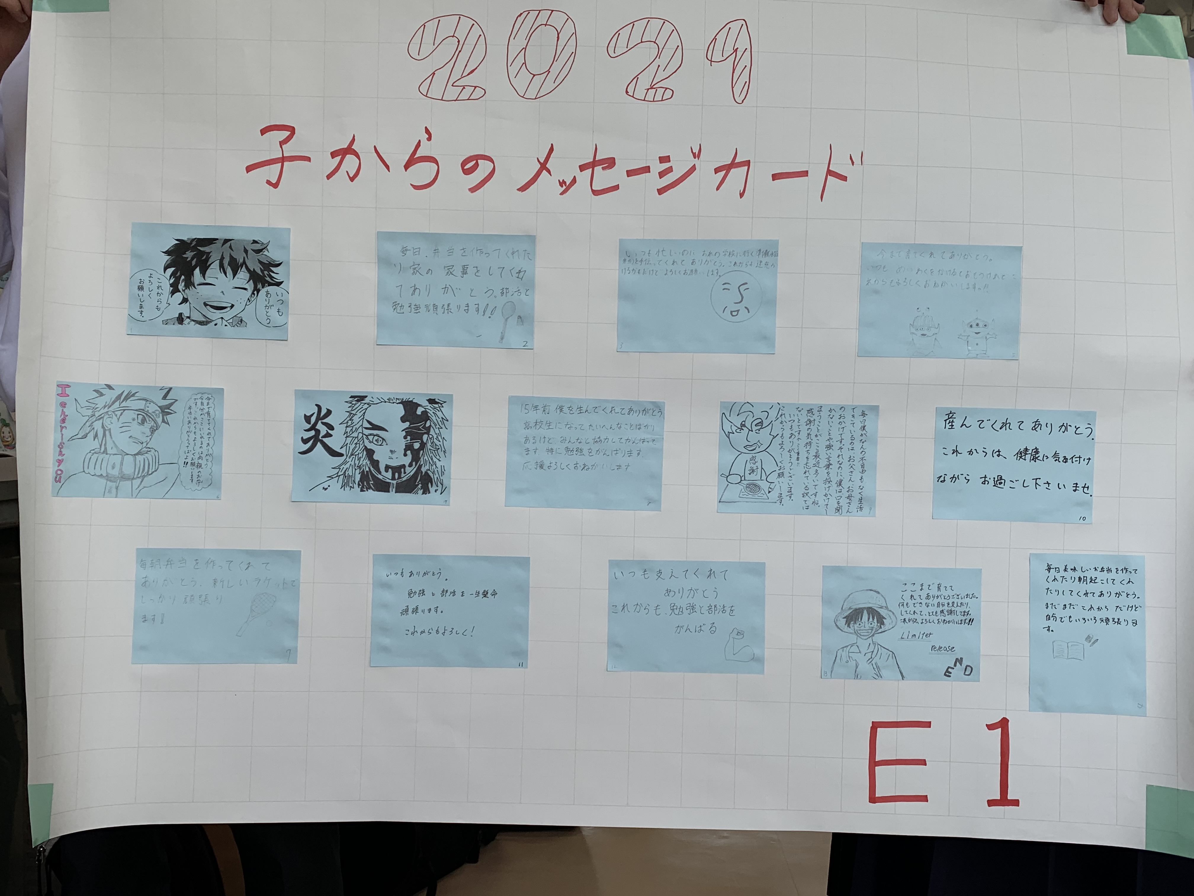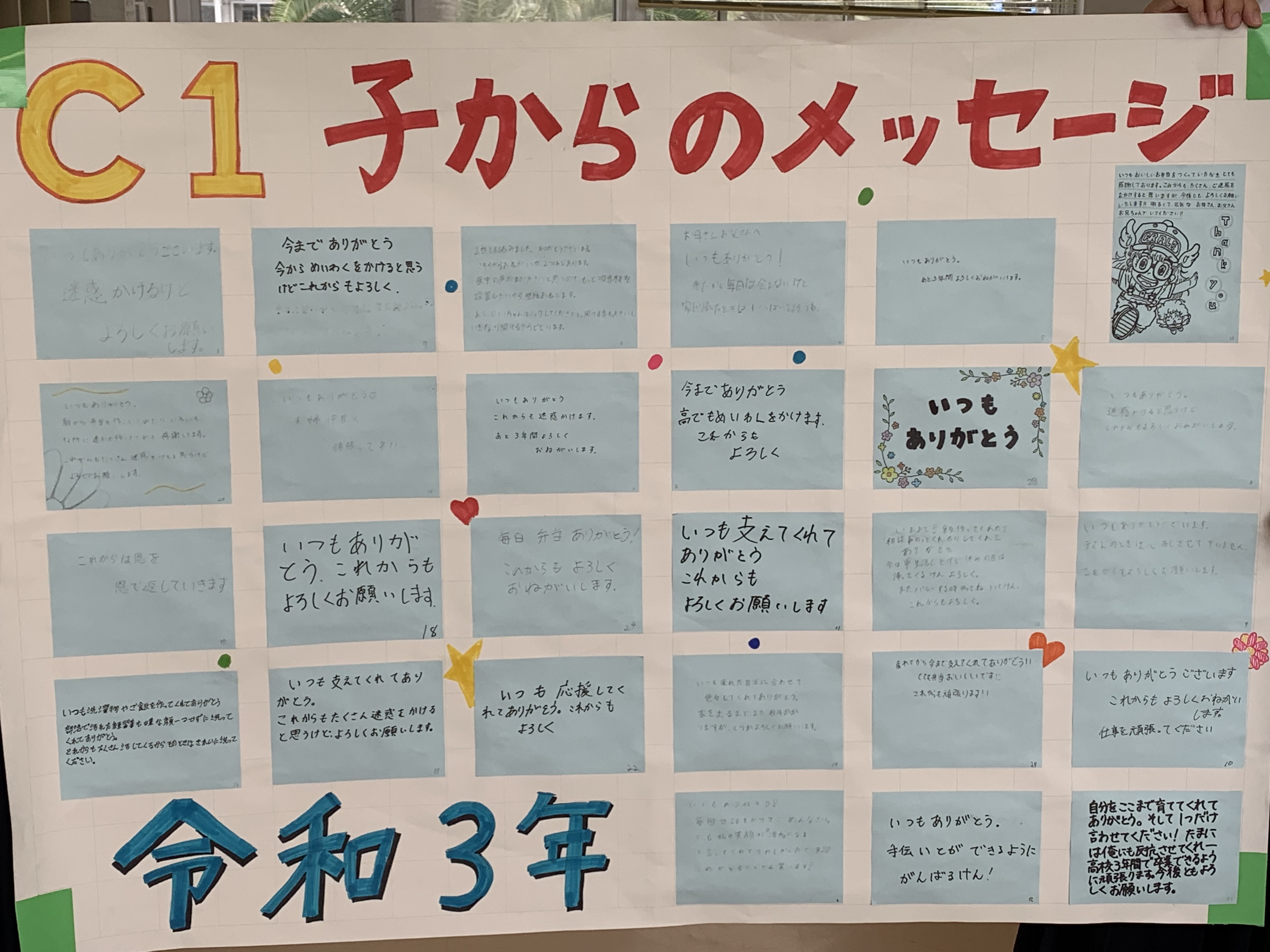 子からのメッセージカードをクラス毎に貼付けました。