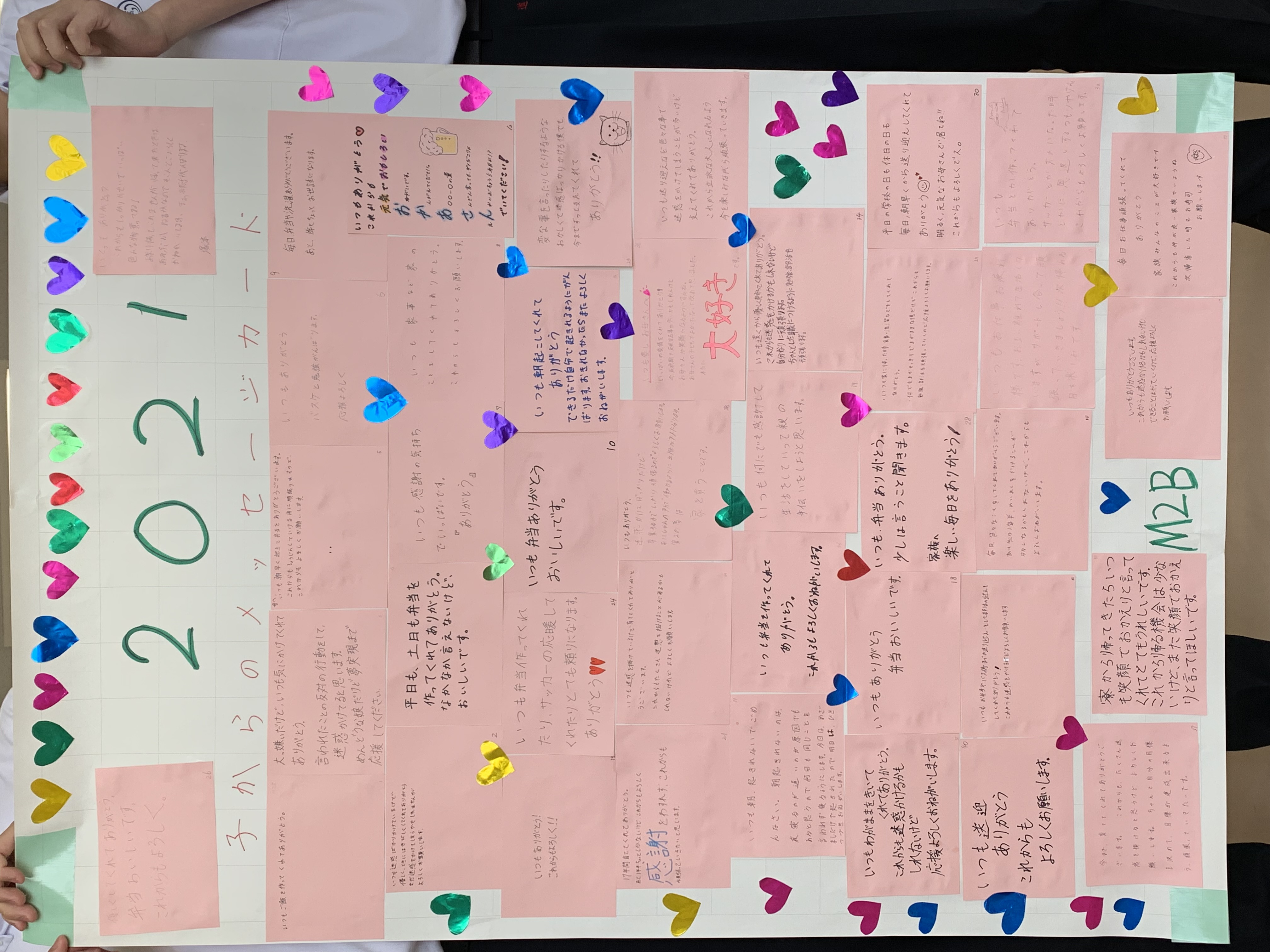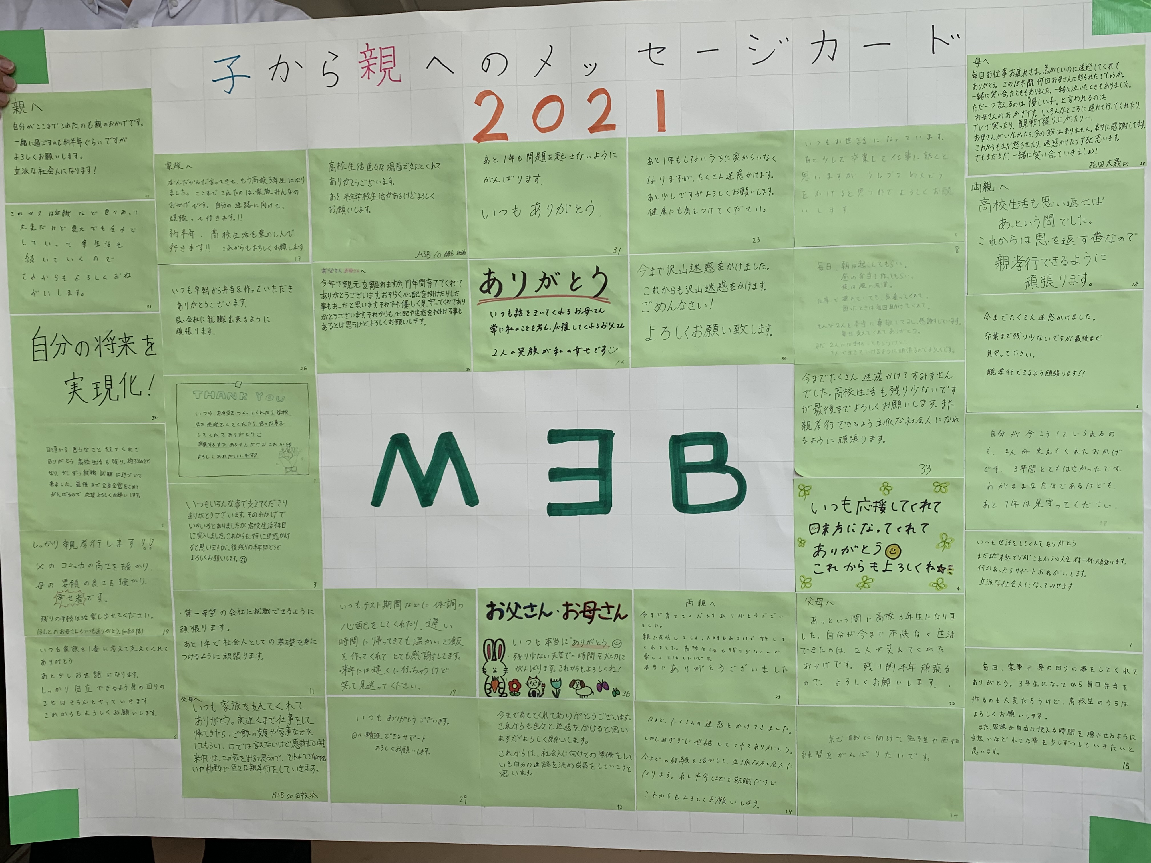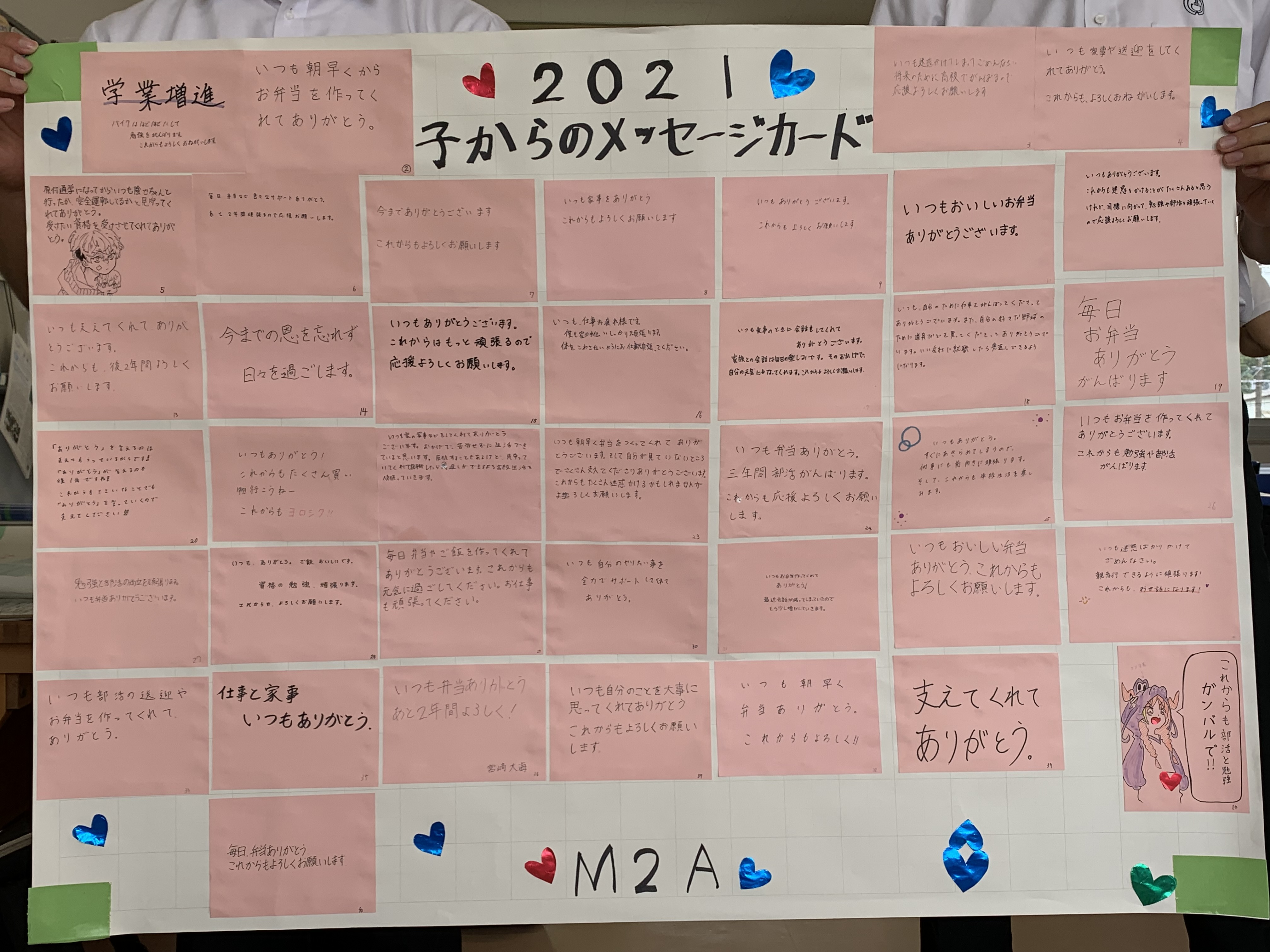 子からのメッセージカードをクラス毎に貼付けました。