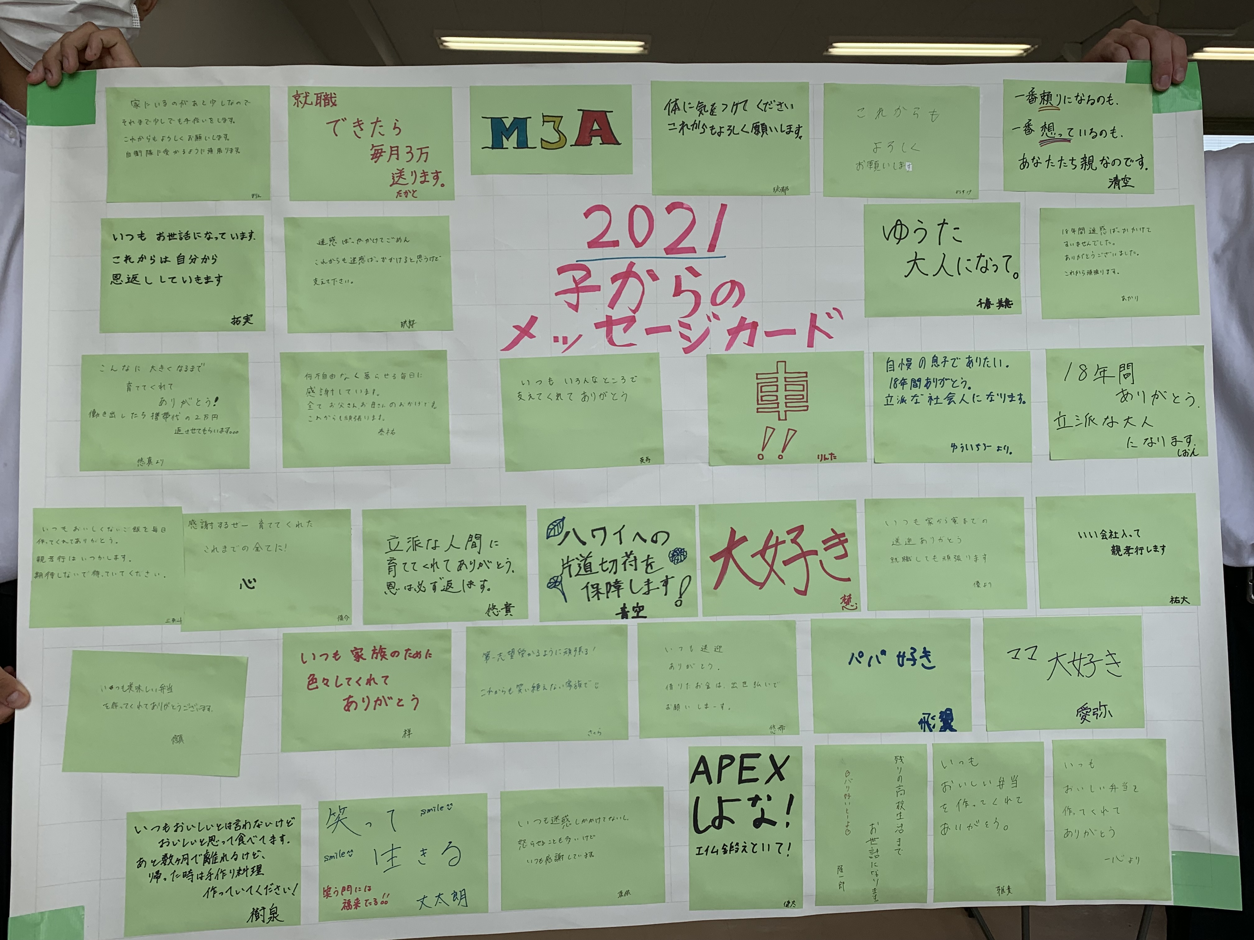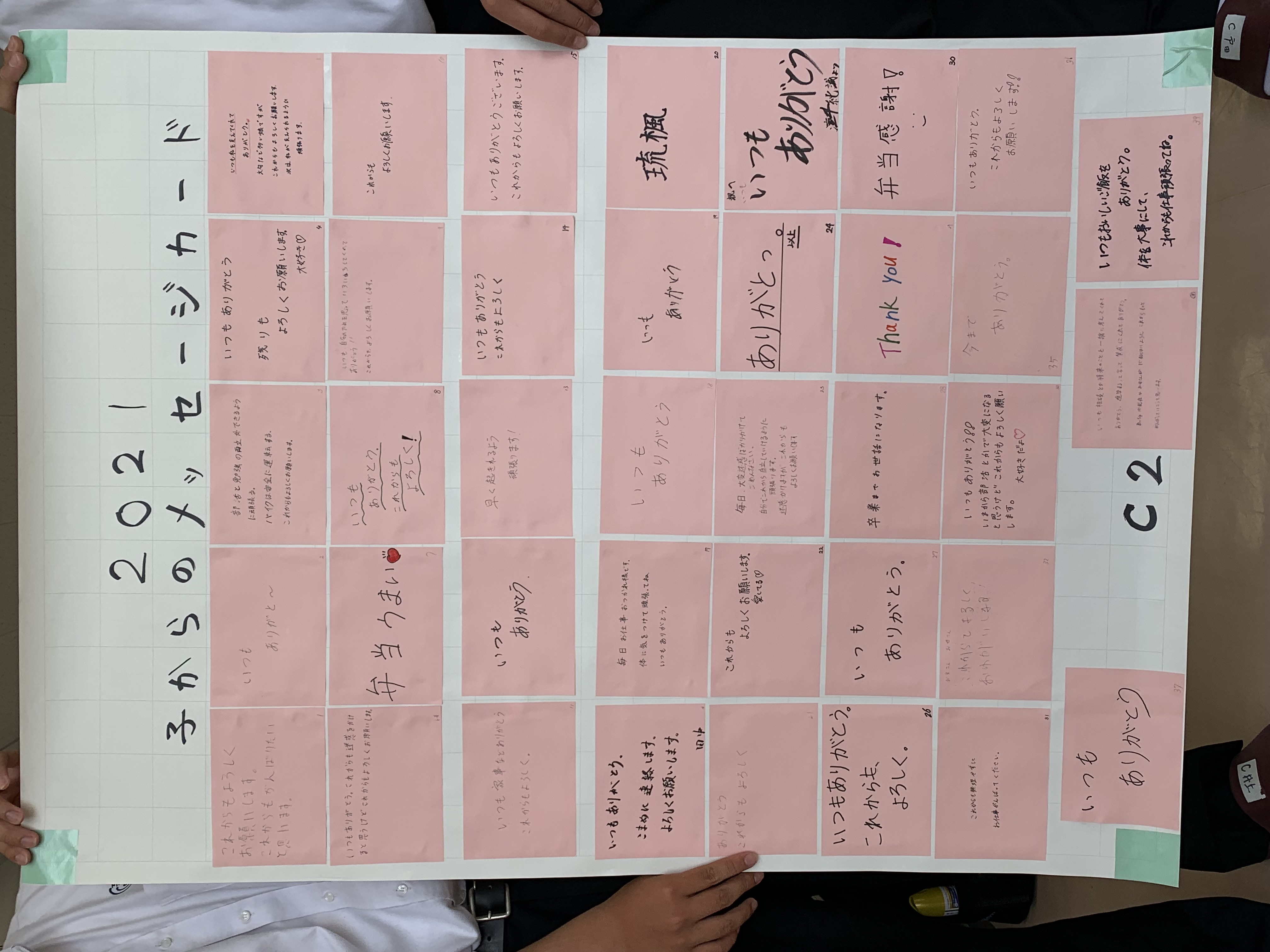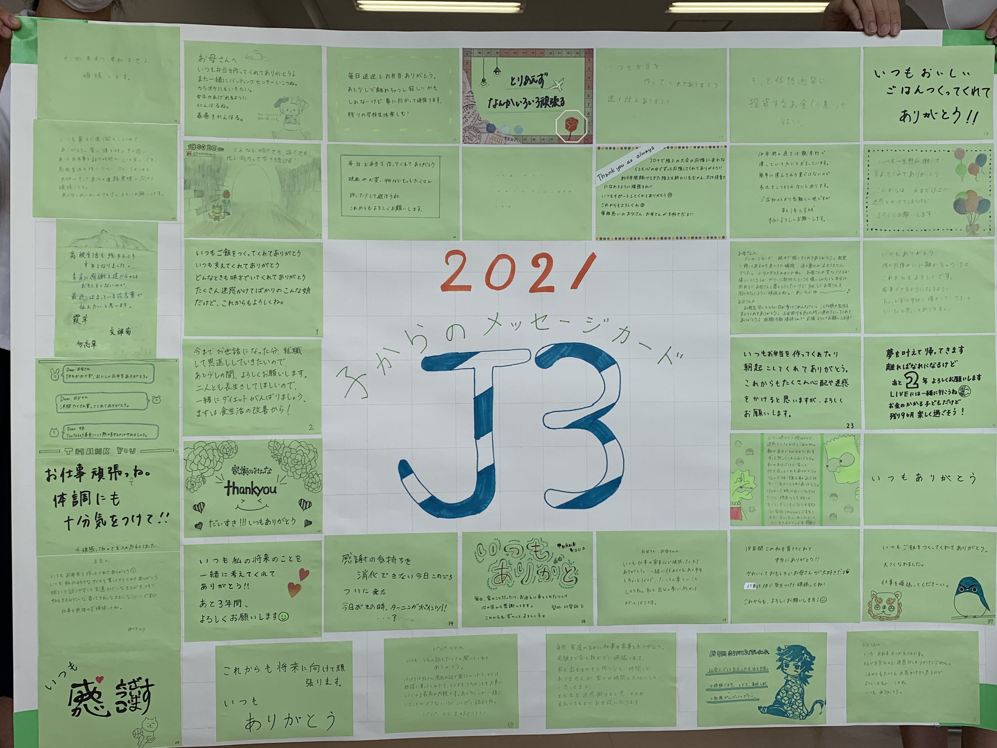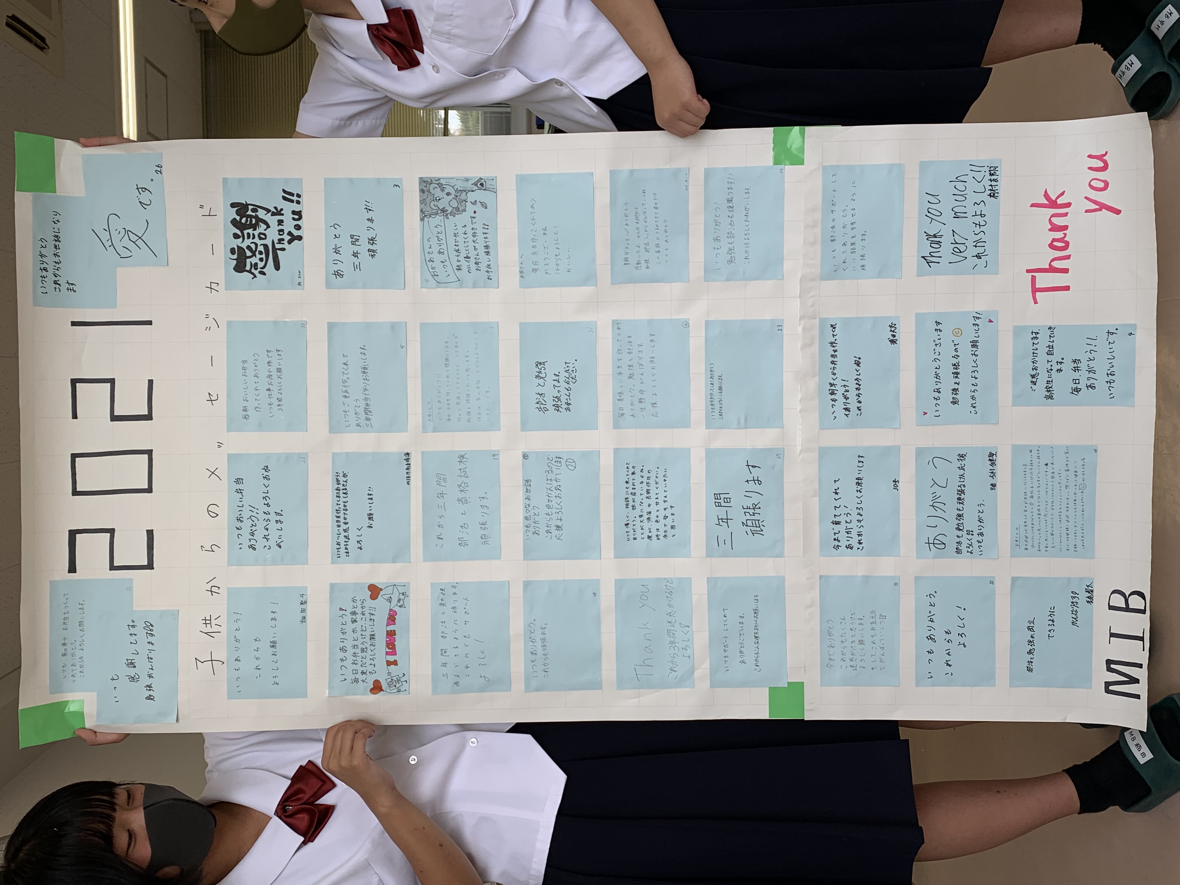 子からのメッセージカードをクラス毎に貼付けました。