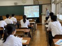 今年度の説明会については、天草市長様、上天草市長様、苓北町長様からのメッセージ動画や参加企業のPR動画を事前に生徒が視聴(YouTube)するとともに、当日は、各教室に2社ずつ企業等が待機し、15分の説明が交代で行われるもので、高校生が話を聞きたい企業がいる部屋を訪れるという形式で実施しました。