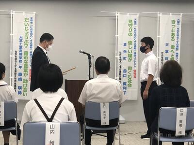 7月17日(土)、天草市総合施設ここらすにおいて、令和3年度「社会を明るくする運動」(主催:社会を明るくする運動天草市推進委員会、天草市青少年育成会議)の表彰式が開催されました。