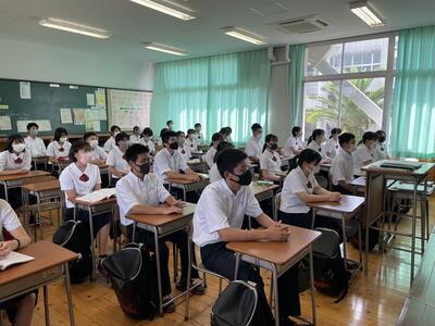 夏休み期間中に天草地域でもコロナ感染が広がり、不要不急の外出自粛が必要とされる夏休みとなりました。そのような状況で、あまり夏休みを満喫できなかった人も多いのではないでしょうか。その代わり家にいる時間が長くなることで、家族で過ごす時間も増えたと思います。本校は、およそ7割の生徒が就職をし、その大半が天草外での就職となります。だからこそ、家族で過ごす時間を有効に活用し1日、1日を大切に過ごして欲しいと思います。