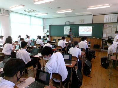 端末を利用したり、プロジェクターで資料を提示したり、視覚的にわかりやすい工夫がなされており、生徒たちも意欲的に取り組んでいました。