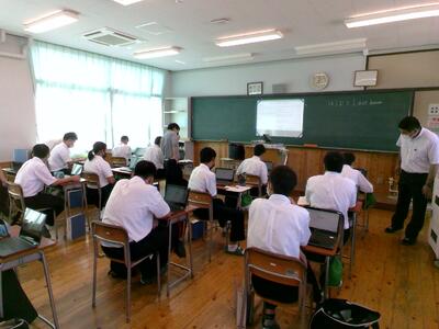 10月11日(月)には、試運転で接続テストをする先生や設置されたプロジェクターを使用して授業を行うクラスもありました。