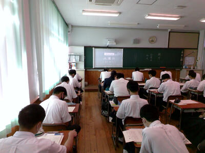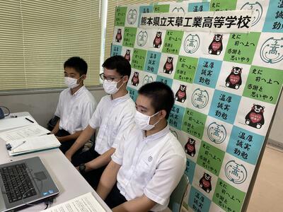 10月20日(水)に開催された台湾留学サポートセンターが主催する「日本の高校生と台湾の大学生とのオンライン討論会」に本校から機械科2年B組の汐見奈伊希、立石剛士、吉口元貴の3名が参加しました。また、情報技術科の1年生も見学に来てくれました。