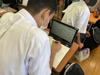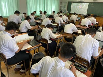 端末を利用したり、プロジェクターで資料を提示したり、視覚的にわかりやすい工夫がなされており、生徒たちも意欲的に取り組んでいました。