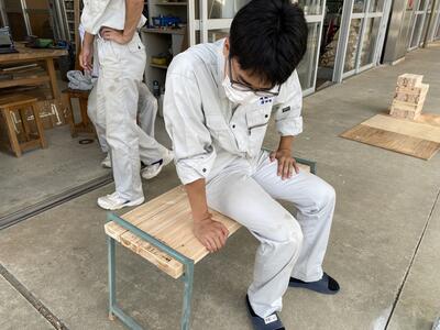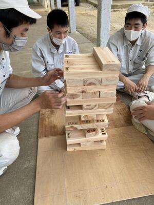 機械科3年生の課題研究で森林組合から提供していただいた「天草ヒノキ」を用いてベンチとビッグジェンガを製作しました。