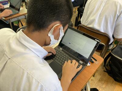 8月に開催された「令和3年度専門高校生グローバルチャレンジ事業(海外オンライン研修)」の事後報告の代表者に機械科2年の立石剛士君が選出されました。