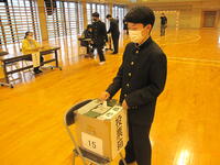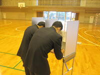 10月21日(木)6限目のLHRを利用して、3年生を対象に「主権者教育特別授業」を行いました。選挙制度についての理解を深め、投票用紙の記入の仕方や投票所の様子などを知り、本番と同じ流れで代表者に模擬投票を行いました。有権者として実践的な知識を身に付ける良い機会になったようです。