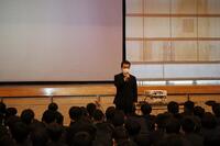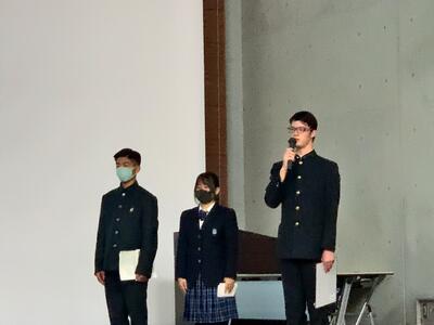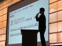 また、「専門高校生グローバルチャレンジ事業実践報告」を本校機械科2年B組の立石剛士くんが、参加者50名の代表として発表しました。