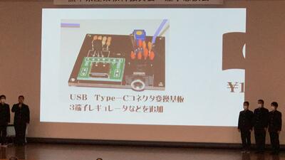 本校電気科の3年生7名(赤城雅さん、荒木玲耶くん、泉海斗くん、小林晃嘉くん、辻快くん、新納進之介くん、野島弘翔くん)が工業部会代表として「工業高校生による技術発信 〜ハニカムラジオを通して〜」の発表を行いました。