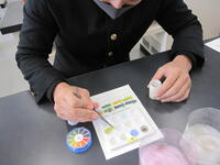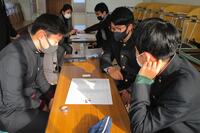 防災主任の村嶋先生のご指導の下、避難所運営ラーニングを行い、自分が運営側だったら何に気をつけなければならないかを考えました。また、「配給された食糧が避難者の数より少なく、誰から優先に配布するべきか」というケースを想定し、グループ討議を行いました。
