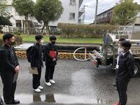 また、市が所有されている給水車を見せていただきました。平成30年7月の西日本豪雨時に、愛媛県宇和島市に給水活動に行かれたこと、また、天草地域でも自然災害などにより断水が起こった際には出動したことを教えていただきました。自分自身が卒業後公務員として仕事を始めた際に、災害時に出動する姿を想像し、その任務の重大さを自覚しました。