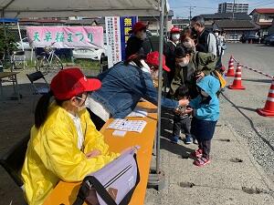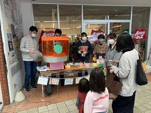 諏訪神社駐車場と銀天街にたくさんのお店や移動動物園などたくさんの催し物がありました。本校生徒は来場者受付や飲食コーナーのアルコール消毒などを行いました。