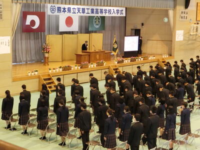 4/8(金)、入学式が行われました。新入生の皆さん、天草工業高校へようこそ。今年度より最新の産業教育設備が整い、新しい時代に対応できる知識と技術を学ぶことができます。工業のスペシャリスト「Professional」をテーマに、学校生活を充実したものにしましょう。