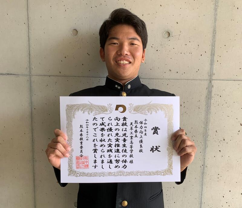 令和4年度熊本県体力向上優良校に撰ばれた県立の高等学校は本校を合わせて6校でした。