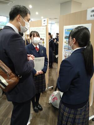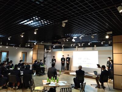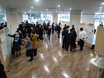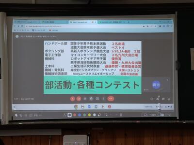 本発表会は先日行われた第10回「高校生ビジネスプラン・グランプリ」でベスト100に入賞した県内2校(千原台高校、熊本中央高校)、県外1校(鹿児島県立市来農芸高校)とベスト20のセミファイナリストとなった本校の4高校が参加し、それぞれのビジネスプランの発表を行いました。どの発表も地域や社会の課題をテーマとした素晴らしい内容で、お互いに刺激を与えるものでした。この経験を今後に生かし、将来につなげるものにしたいと思います。