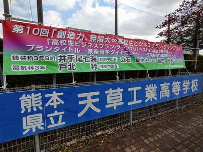 12月25日(日)、くまもと森都心プラザにて第1回高校生ビジネスプラン発表会in南九州(主催:日本政策金融公庫)に機械・電気科の3年生(チーム名:M3BE)が参加してきました。