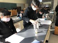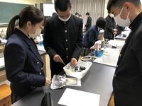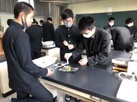 自然災害の多い日本では、どんな災害があるのか把握し、それに備えることが必要です。そこで、1年生全クラスを対象に、災害時でも明かりを確保する力をつけるために、理科の濱田先生のご指導の下、オイルランプを製作する授業を行いました。