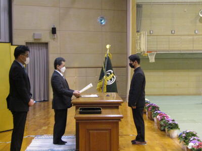 明日の卒業式を前に3年生の表彰式が行われました。表彰内容は以下の通りです。(順不同)