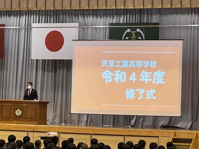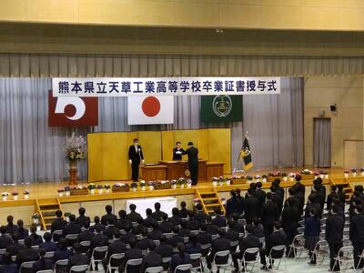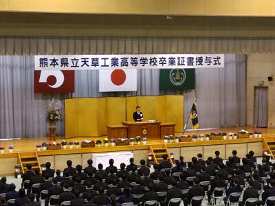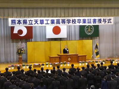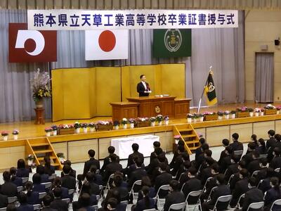 校訓である温厚・誠実・勤勉の3つの精神を胸に、天草工業高校卒業生としての自信と誇り、そして考動力と利他心を持って、これからの成長と活躍を期待します。未来に幸多かれ。