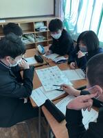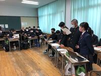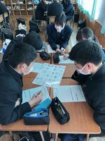 1学年の地理総合の授業で、防災学習を行っています。今回は教科横断的指導(クロスカリキュラム)の取り組みとして、コミュニケーション英語Ⅰとの4時間構成のコラボ授業を行いました。