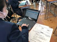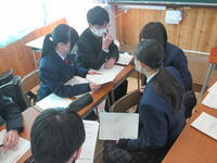 図書館の秋田先生にご協力いただきながら、図書館やタブレット端末を利用してディベートに必要な資料を収集しました。資料検索には朝日新聞社が提供している記事検索サイト「朝日けんさくくん」を利用して、効果的に新聞記事を活用することが出来ました。3月14~17日の授業で発表を行い、担任の先生や他教科の先生方にも観覧いただきました。