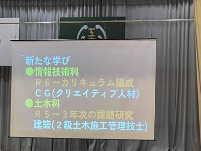 ・新たな学びについて(情報技術科:CGの学び、土木科:建築の学び)※CGの学びについては映像を用いて紹介されました。
