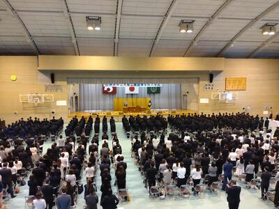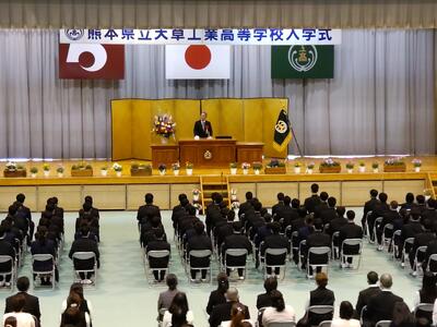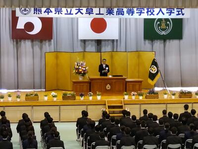 本日、午後より入学式が行われました。本年度は新型コロナウイルスに関する行動制限も緩和され、入場制限も和らぎましたので来賓と保護者の方々にも迎えられました。新入生の皆さん、天草工業高校へようこそ。校訓「温厚・誠実・勤勉」の下、「Discover Your Next Level ~もう一歩踏み出す~」をテーマに学校生活を充実したものにしましょう。
